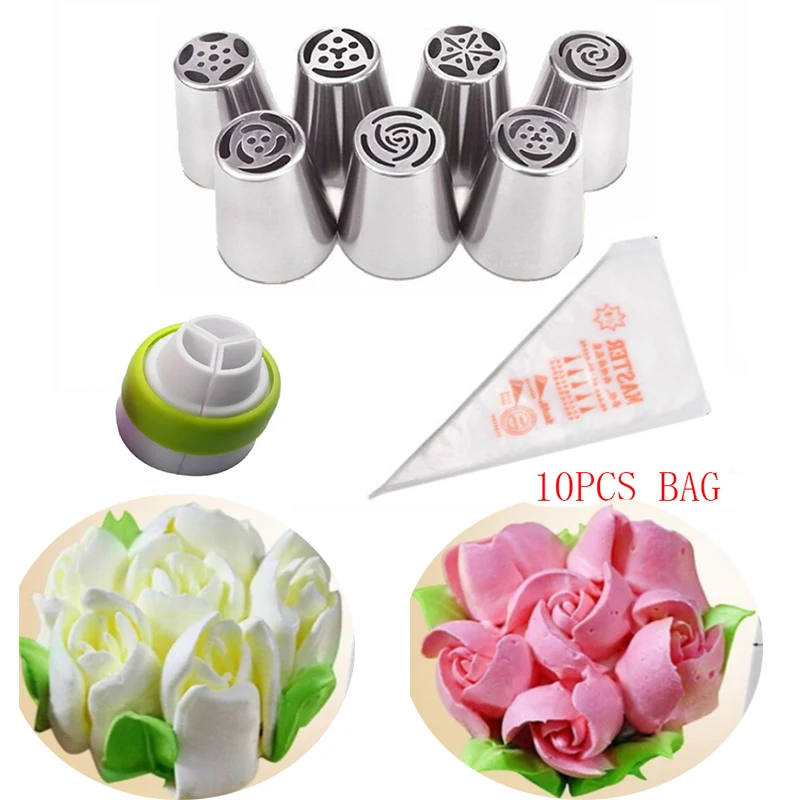 18 шт.компл. Кондитерские насадки для глазировки, русские Кондитерские насадки для украшения тортов, русские насадки для цветов, 10 кондитерских мешков, 1 Трехцветная муфта