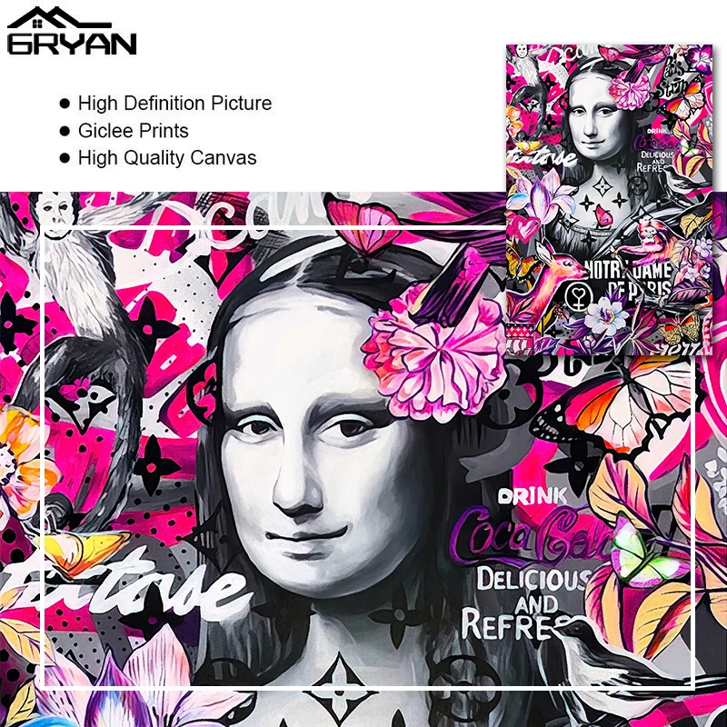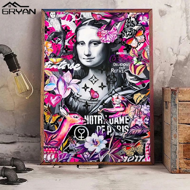 Картина на холсте Мона Лиза, настенные постеры с уличным граффити в скандинавском стиле, домашний декор для гостиной, спальни