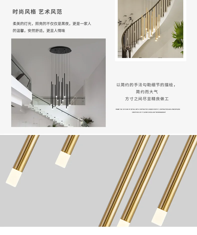 Современные подвесные лампы в скандинавском стиле для лестницы, декоративные светодиодсветодиодный светильники золотого и черного цвета для вращающихся лестниц, виллы, гостиной