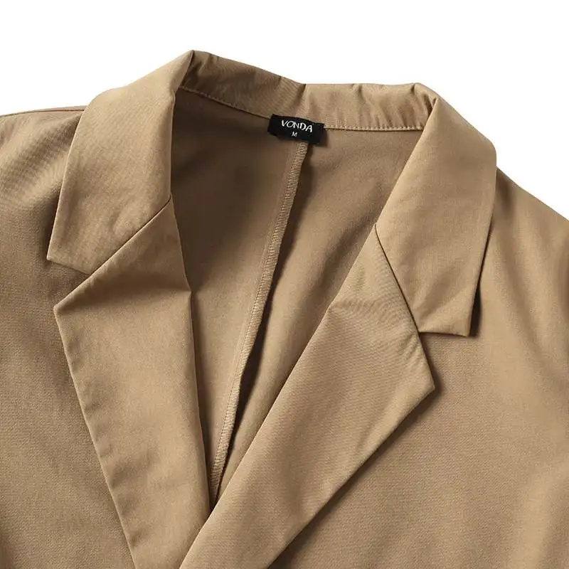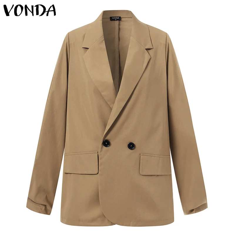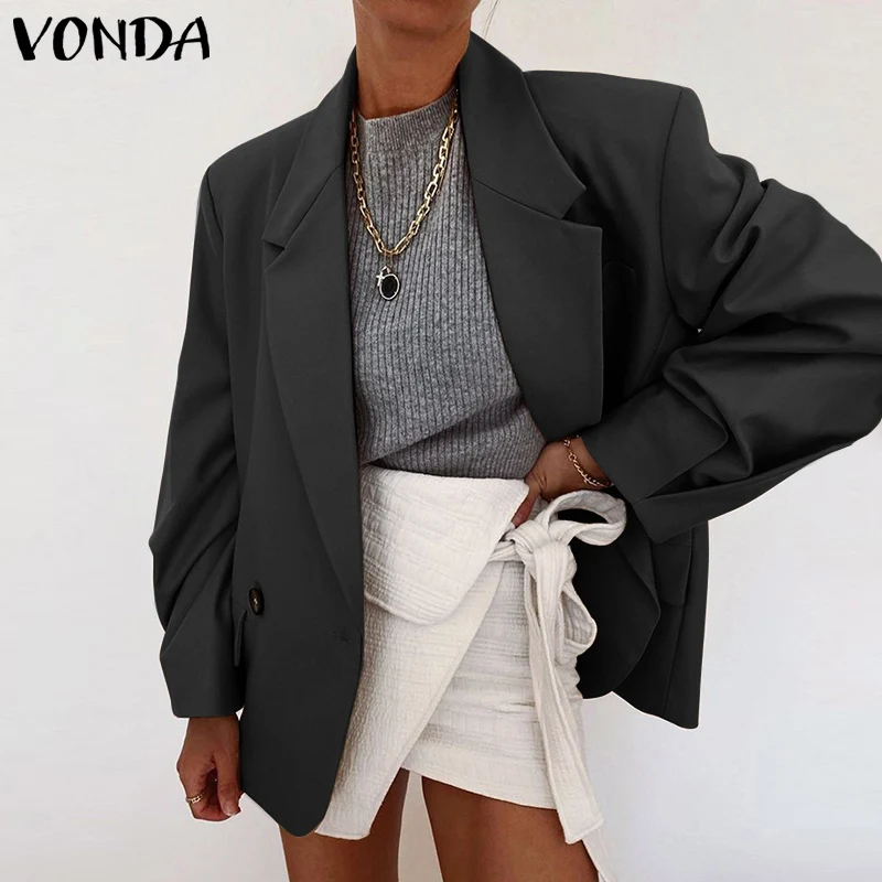 Женский офисный Блейзер 2022 VONDA, ретро блейзер с воротником с отворотом и пуговицами, повседневные однотонные женские пальто, женские пальто
