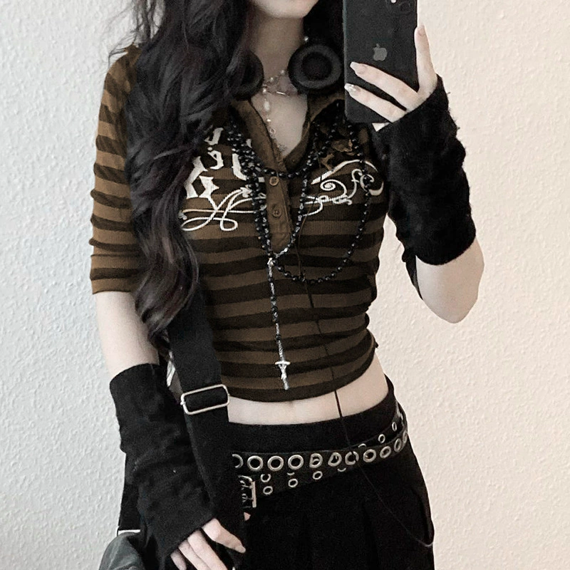 Милые футболки в полоску с принтом в готическом стиле Sweetown Y2K,...