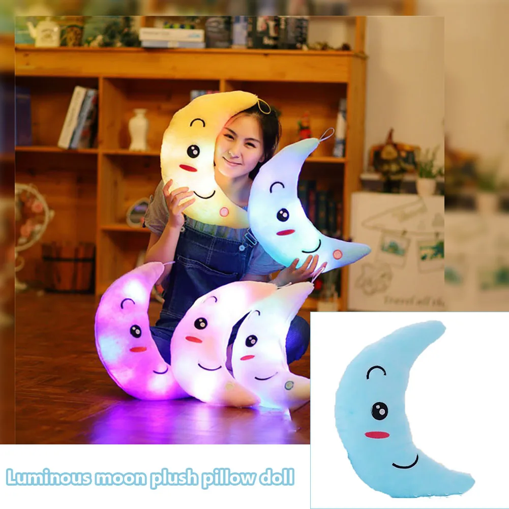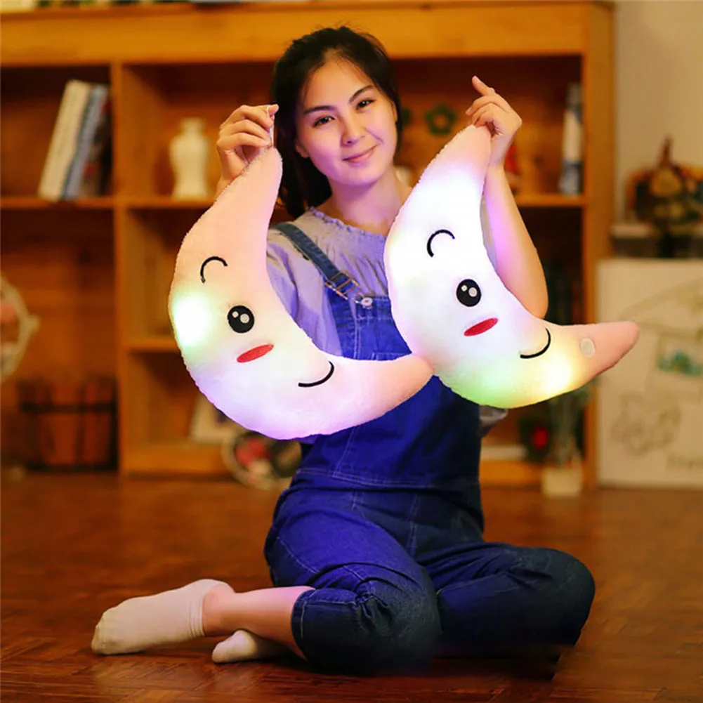 Креативная светящаяся Подушка, плюшевая набивная кукла, подушка в форме Луны, игрушка со светодиодсветильник кой, рождественский подарок для детей