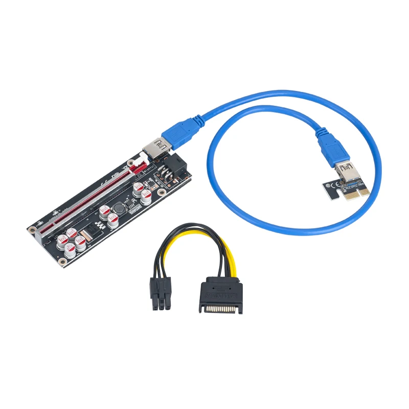 1 * PCI-E 16X подъемная плата,1 * Адаптер PCI-E 1X,1*60 см USB 3,0 кабель,1 * SATA 15 Pin на 6 Pin кабель питания