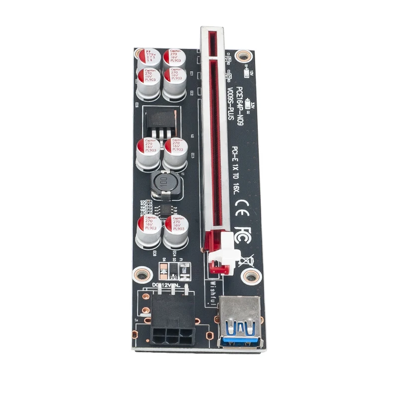 1. Версии 009S PLUS riser kits являются новейшими и лучшими в линейном решении для настройки установок для майнинга GPU.2. Одна Золотая графическая карта с 6-контактным интерфейсом, которая обеспечивает независимое питание графической карты и снижает нагрузку на материнскую плату при использовании большего количества графических карт.3. 8 твердых конденсаторов, 60 см USB 3,0 кабель, подходит для всех оконных систем, LINUX и MAC.