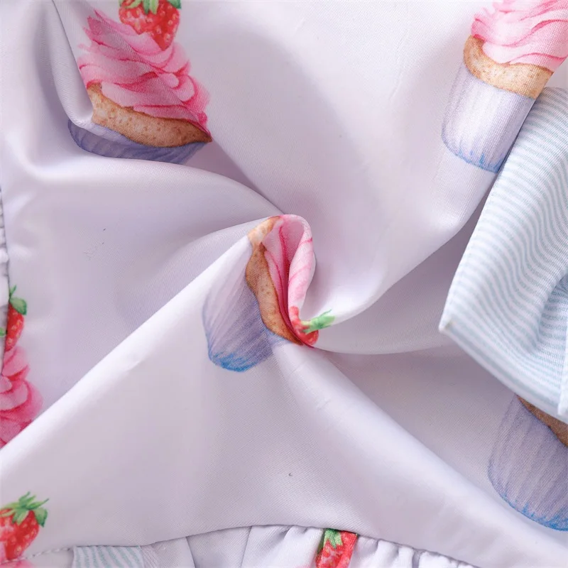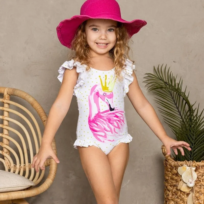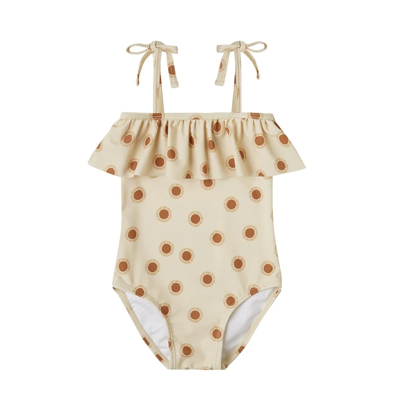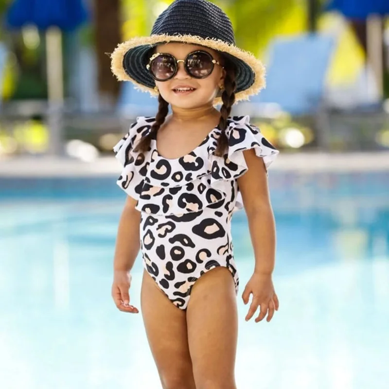 Детский пляжный костюм с цветочным принтом и оборками на рукавах