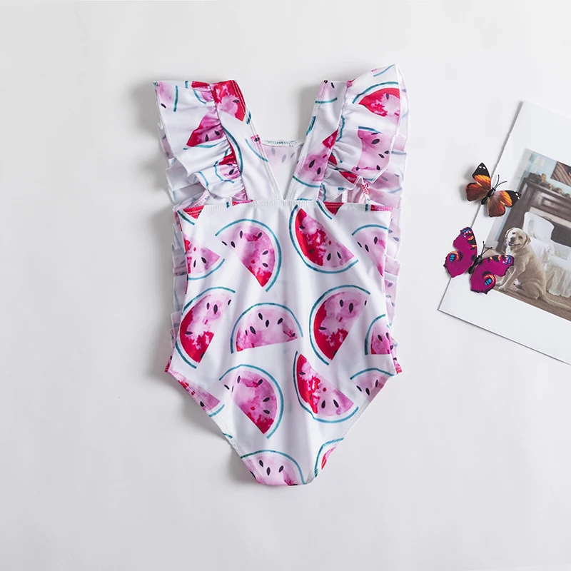 Слитный купальник с цветочным принтом для девочек, новый летний дет...