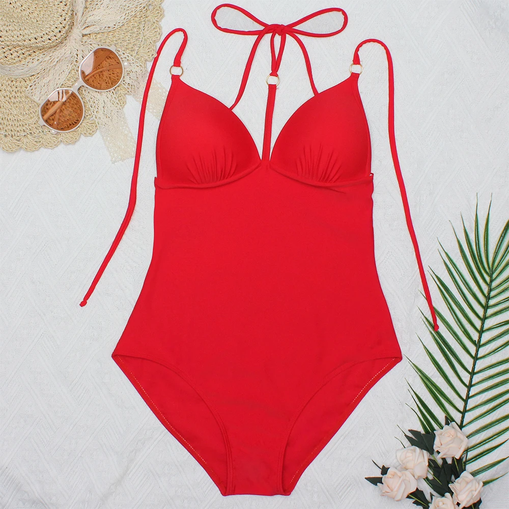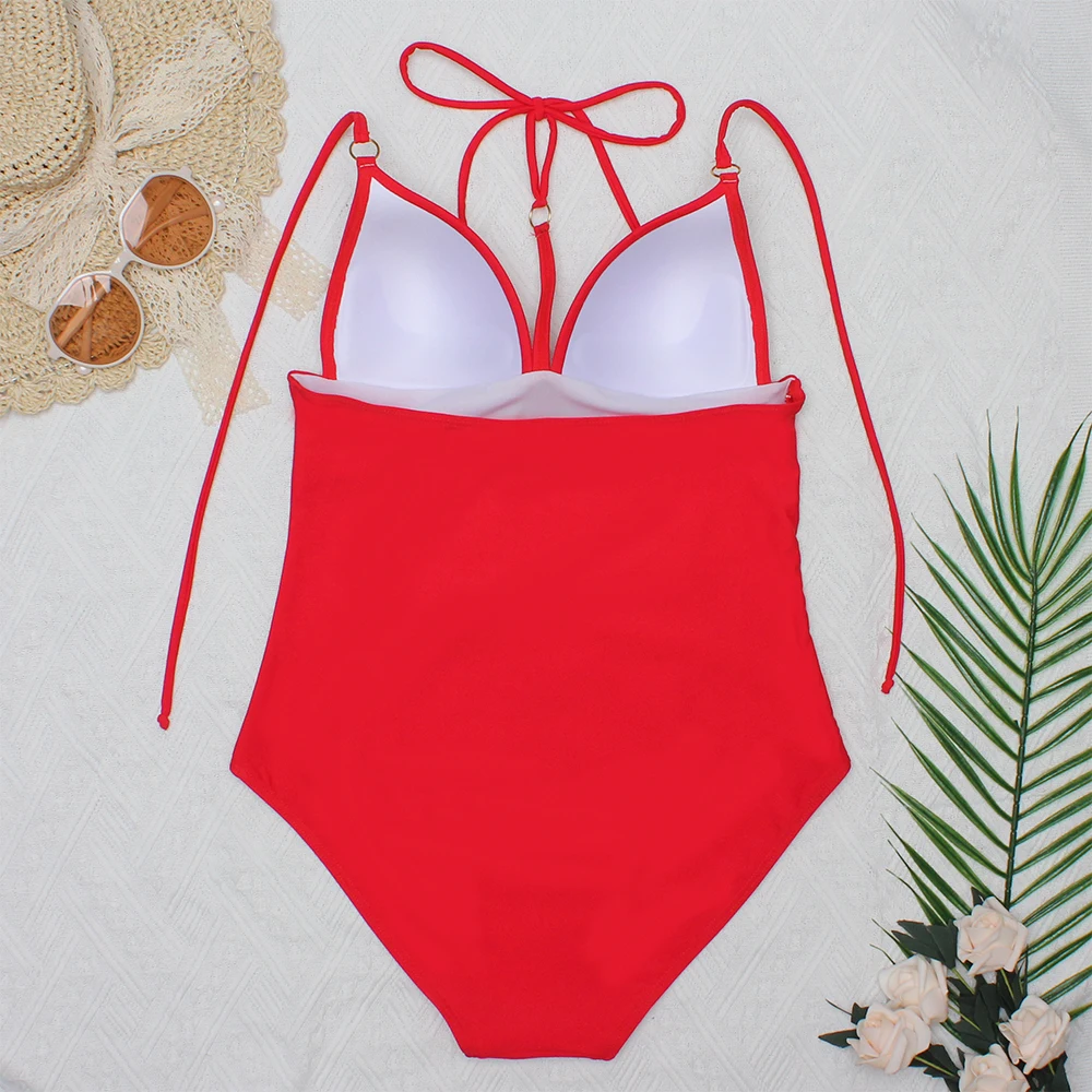 Женский слитный купальник Gossina, красный купальник, сексуальный бандажный боди, облегающий пляжный купальный костюм для женщин, монокини 2022
