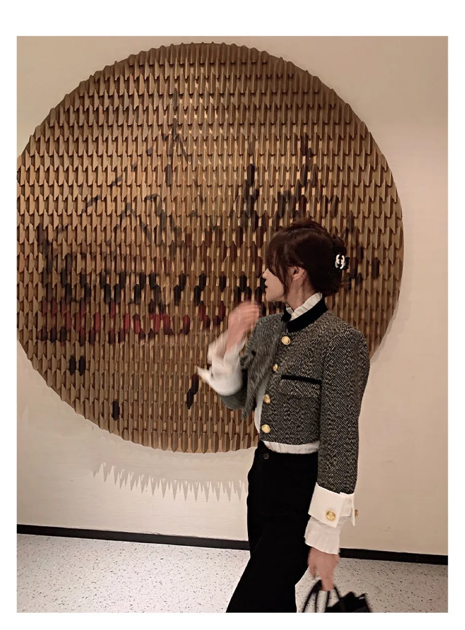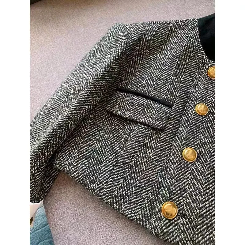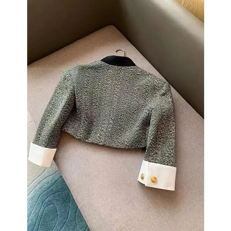 Однобортная одежда для конного спорта с воротником-стойкой, твидовая серая короткая куртка с воротником-стойкой, женское винтажное пальто, новинка на осень и зиму