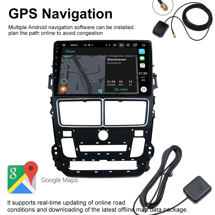 Автомагнитола 128 ГБ, мультимедийный видеоплеер для Toyota Vios Yaris 2017, 2018, 2020, 2021, Android, GPS-навигация, автомобильная стереосистема Carplay