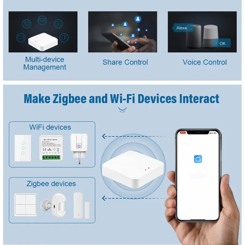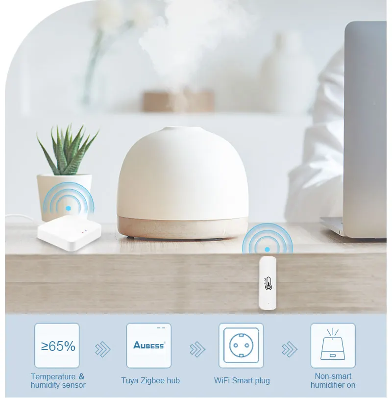1. Это Серия Датчиков tuya zigbee и мини-модули включения-выключения.2. Пара zigbee mini Wiress Switch и мост, вы можете управлять подключенным переключателем через приложение в любом месте.3. Подключите мост к датчику температуры и влажности.