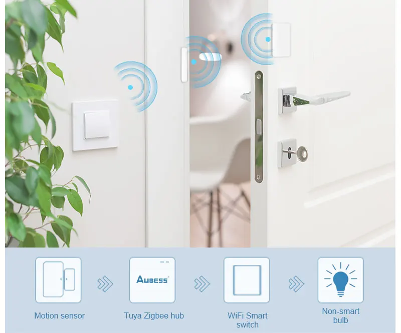 Затем вы можете включить/выключить устройства.4. Работает с датчиком движения tuya zigbee, чтобы сделать ваш светильник гостиной автоматически включается, когда вы входите в гостиную вечером, без темноты перед вами.5. Хотите, чтобы светильник выключился, когда вы закрываете дверь и выходите из дома? tuya zigbee воплощает вашу идею в реальность.