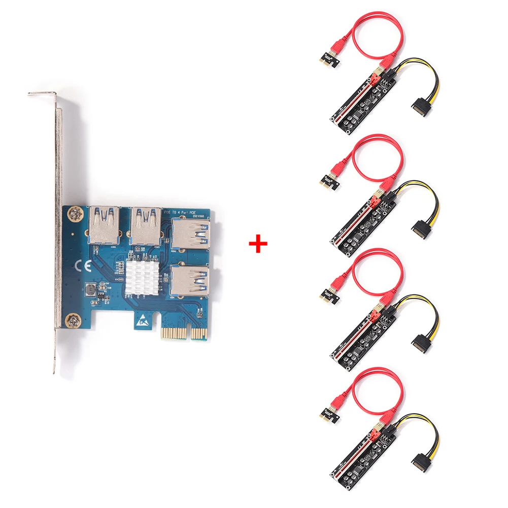 PCI-E X4 1 до 4 USB3.0 мультипликатор карта + 4xPCI-E 16X Riser + 4xPCI-E 1X адаптер + VER009S Plus удлинитель для настольного компьютера BTC Mining PCI Express