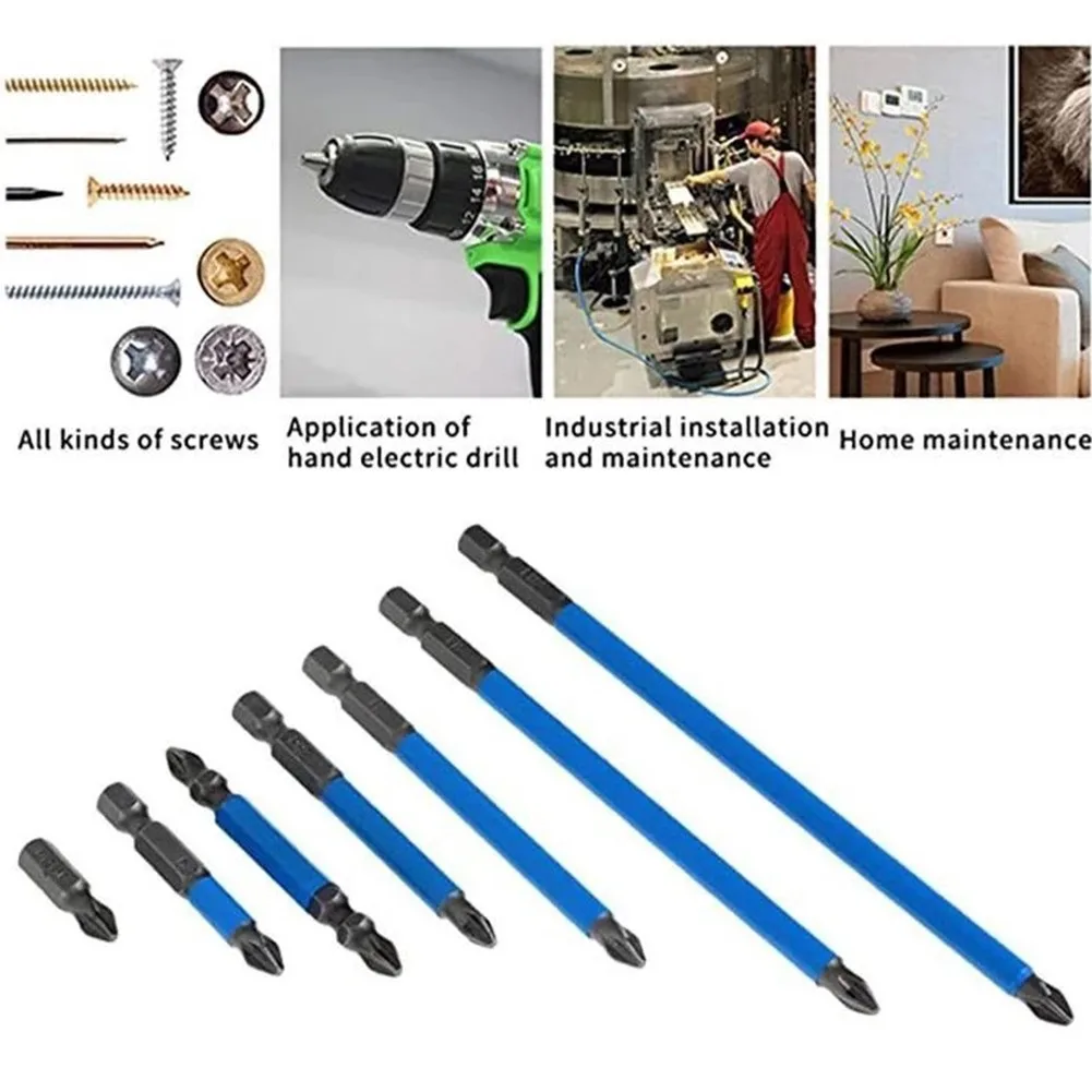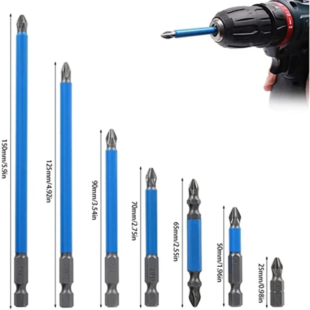 Набор насадок для шуруповерта PH2, 6,35 мм, с шестигранным хвостовиком, магнитные Нескользящие насадки для дрели, Набор насадок для электрического шуруповерта, ручные инструменты, 25-150 мм, 7 шт.