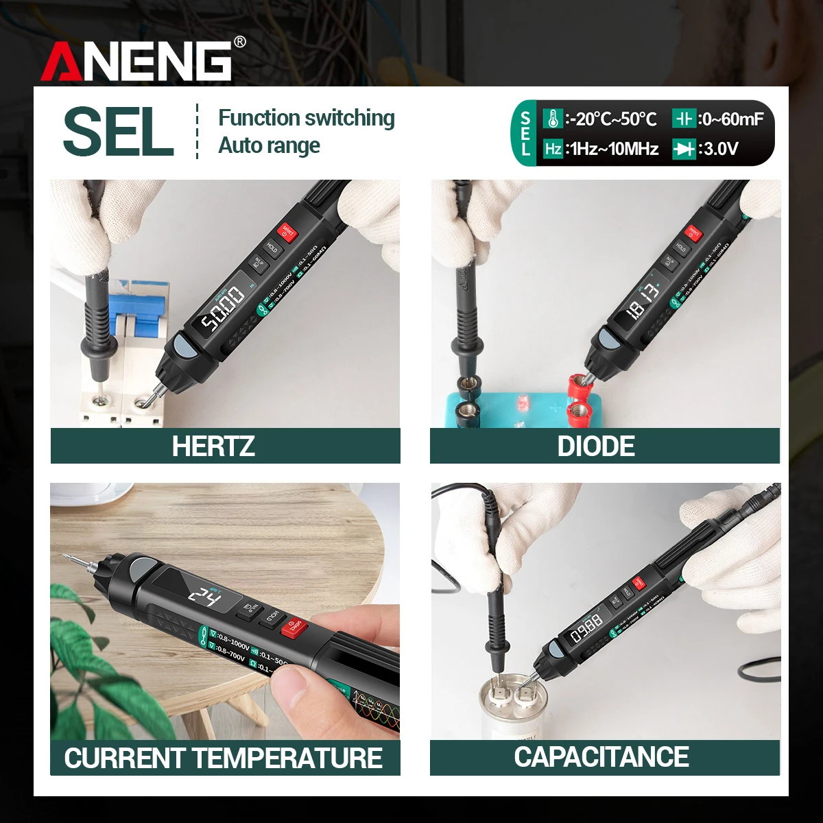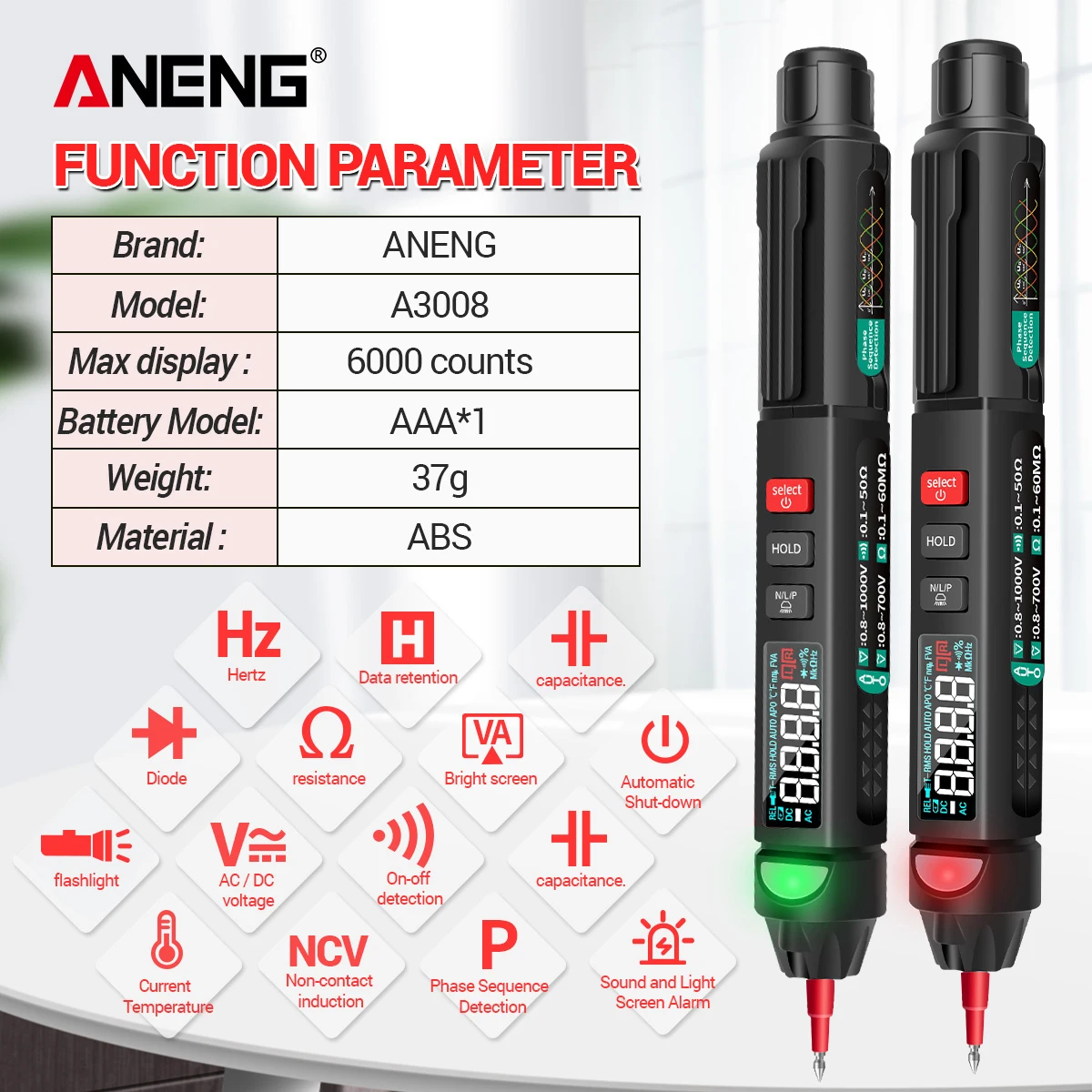 Цифровой мультиметр ANENG A3008, Бесконтактный автоматический мультиметр, 6000 отсчетов