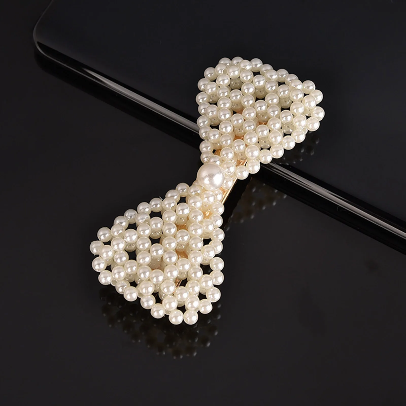 Заколка для волос с бантом и жемчугом Женская, простой зажим для во...
