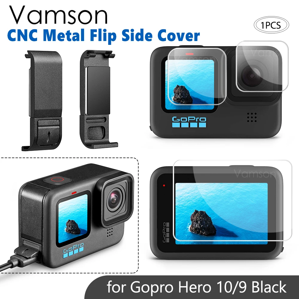 Съемный флип-аккумулятор Vamson CNC боковая крышка для экшн-камеры GoPro Hero 10 9 с пленкой из закаленного стекла для GoPro 10 Аксессуары