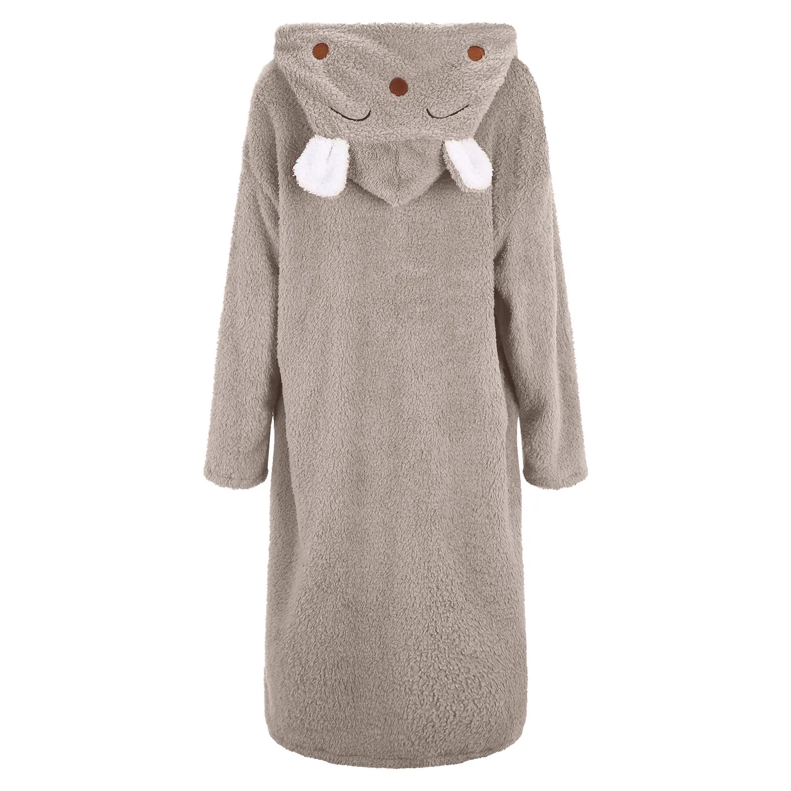 Женская пижама 2022, халат, женский фланелевый Халат с двойным карманом и капюшоном с 3D ушками, домашняя одежда, мягкий теплый женский халат, пижама 2022