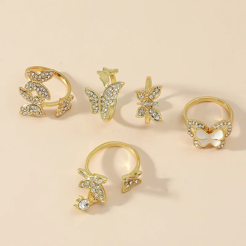 5 шт.компл. простые кольца-бабочки корейские стразы открытые кольца...