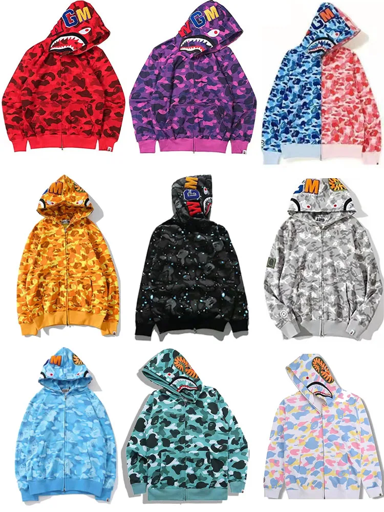 Высококачественная зимняя модная мужская и женская камуфляжная толстовка с капюшоном bape shark из полиэстера Молодежная уличная одежда унисекс