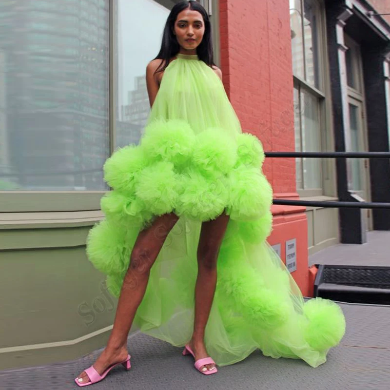 Современные Зеленые Вечерние платья с высоким низким вырезом на заказ, женское вечернее платье для выпускного вечера, официальное платье знаменитости, праздничное платье