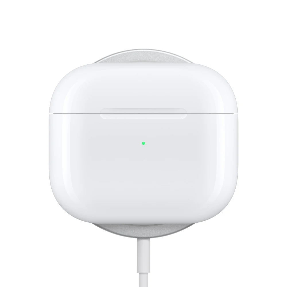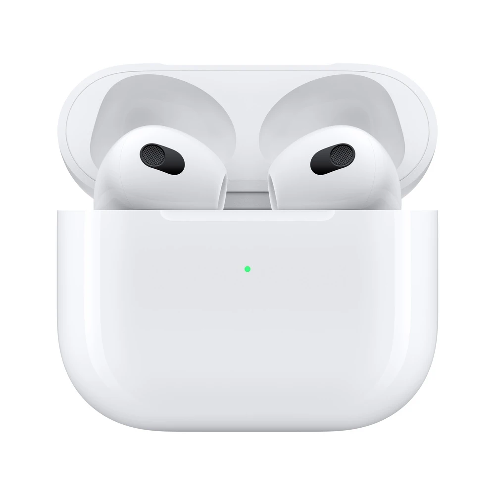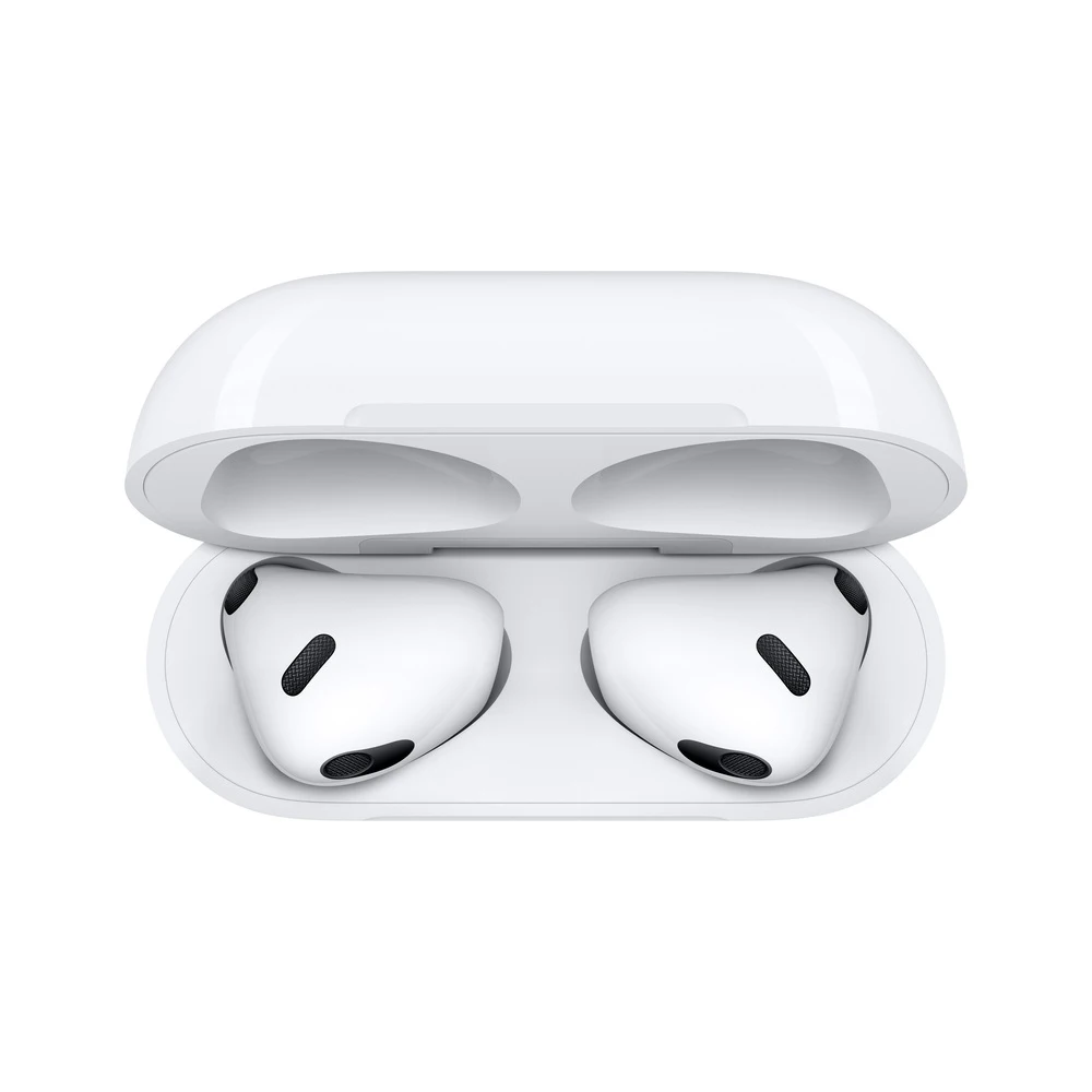 AirPods 3 - третье поколение вкладышей, представленное компанией Apple в конце октября 2021 года. Теперь с защитой от пота и влаги по стандарту IPX4, чтобы можно было брать их с собой на тренировку или прогулку в сырую погоду. Наушники Apple AirPods 3 получили обновленный, более эргономичный дизайн — форма стала изящнее, а ножка короче. Из других обновлений — технология пространственного аудио с функцией динамического отслеживания движений головы, создающая трехмерную картину звука, и адаптивный эквалайзер корректирующий с помощью направленных внутрь микрофонов характер НЧ и СЧ в режиме реального времени, чтобы пользователь мог услышать все богатство тембров. Автономность кейса увеличена до 30 часов, а помимо стандартного зарядного разъема Lightning добавлена возможность беспроводной зарядки по стандарту Qi. Сами наушники теперь тоже работают дольше. До 6 часов без подзарядки. Также расширен перечень функций управления сенсорным датчиком нажатия, а датчик контакта с кожей стал работать еще точнее, автопауза срабатывает безотказно.