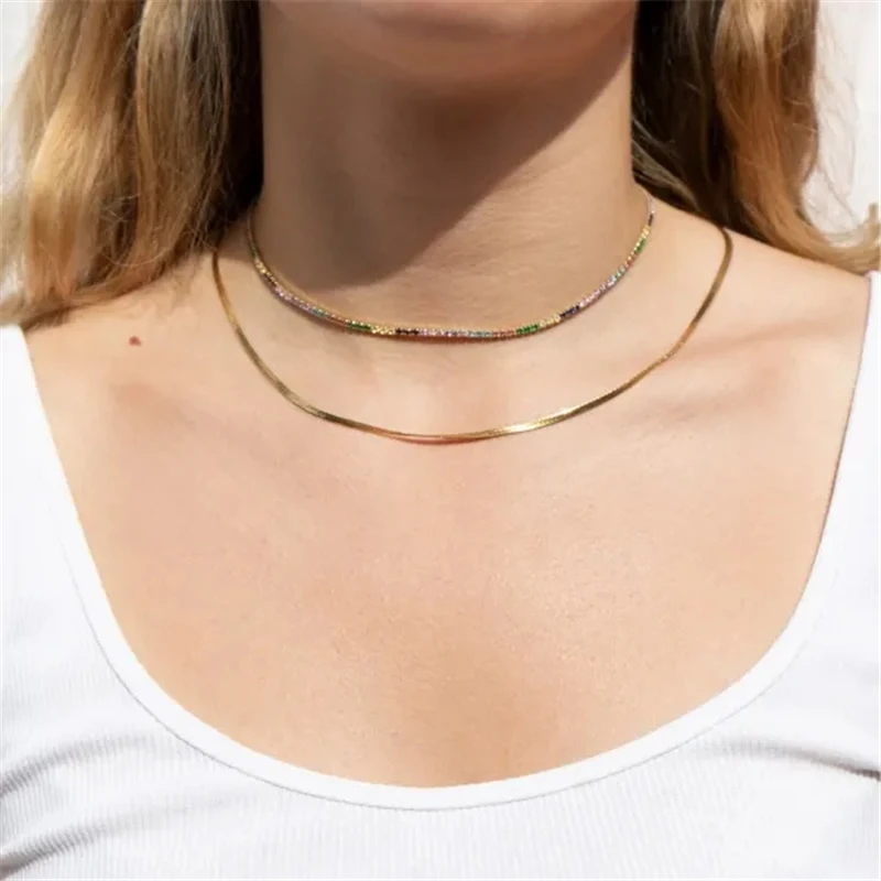 Цепочка-чокер Женская длиной до ключиц с разноцветным Цирконом