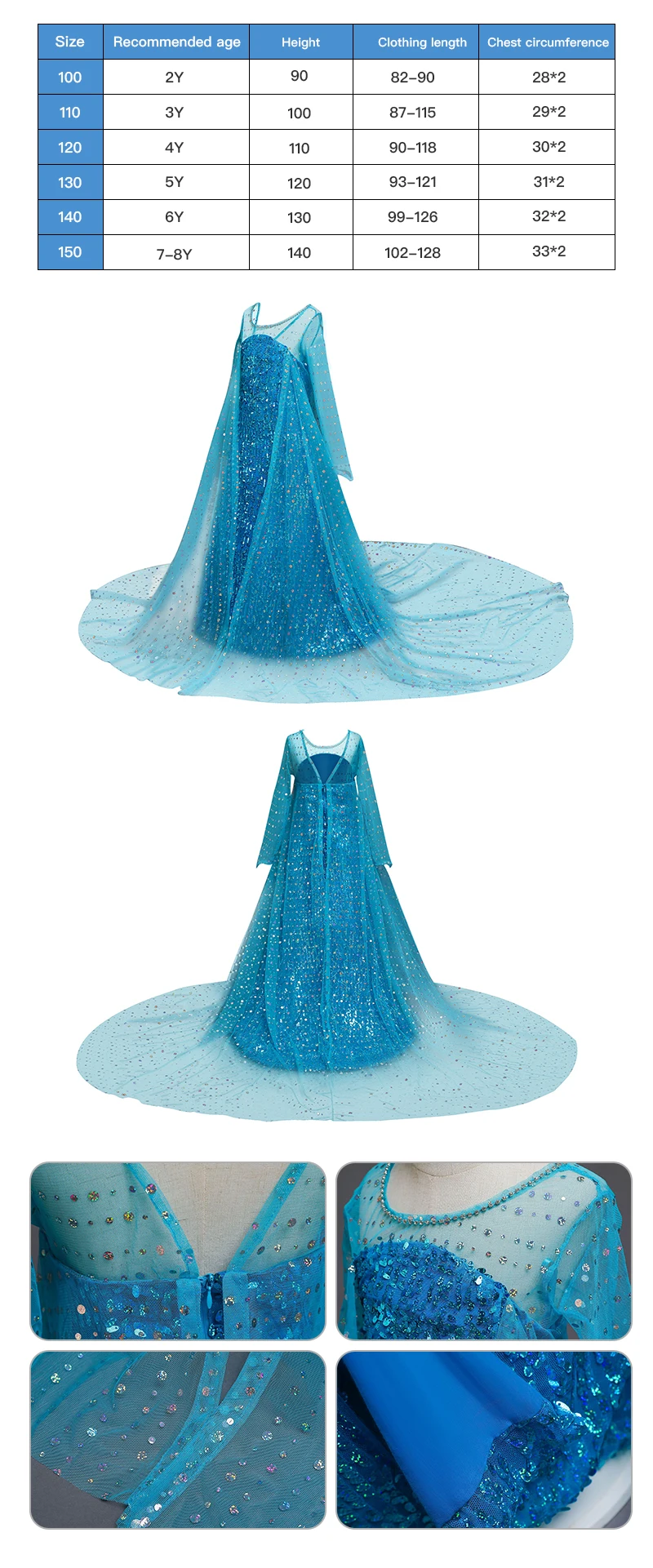 Тема: костюм принцессы для девочекМатериал: полиэстер, сетка, другоеВес: около 0,15-0,35 кг/шт.Для детей в возрасте: От 2 до 10 летРазмер CN: 100-110-120-130-140-150/S-M-L-XLПринцесса: Анна, ЭльзаУпаковка: по вашему выбору + полипропиленовый пакет