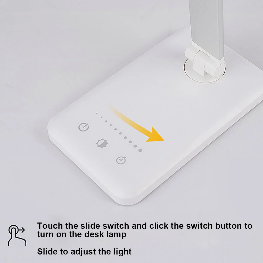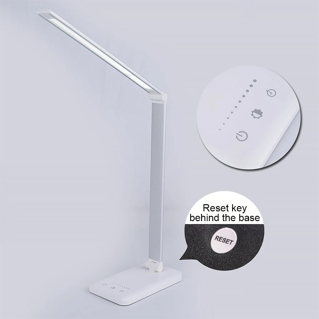 Светодиодная настольная лампа для чтения, Складной поворотный сенсорный выключатель с плавной регулировкой яркости, зарядка через USB, с таймером, 5 в постоянного тока