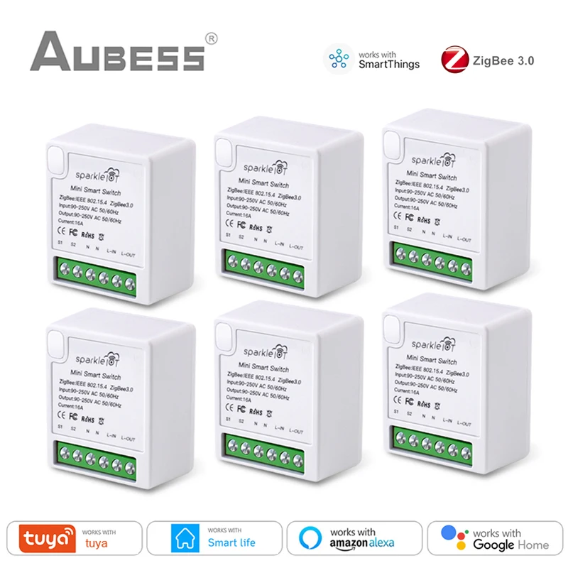 Умный мини-выключатель AUBESS, 16 А, с поддержкой пульта ДУ