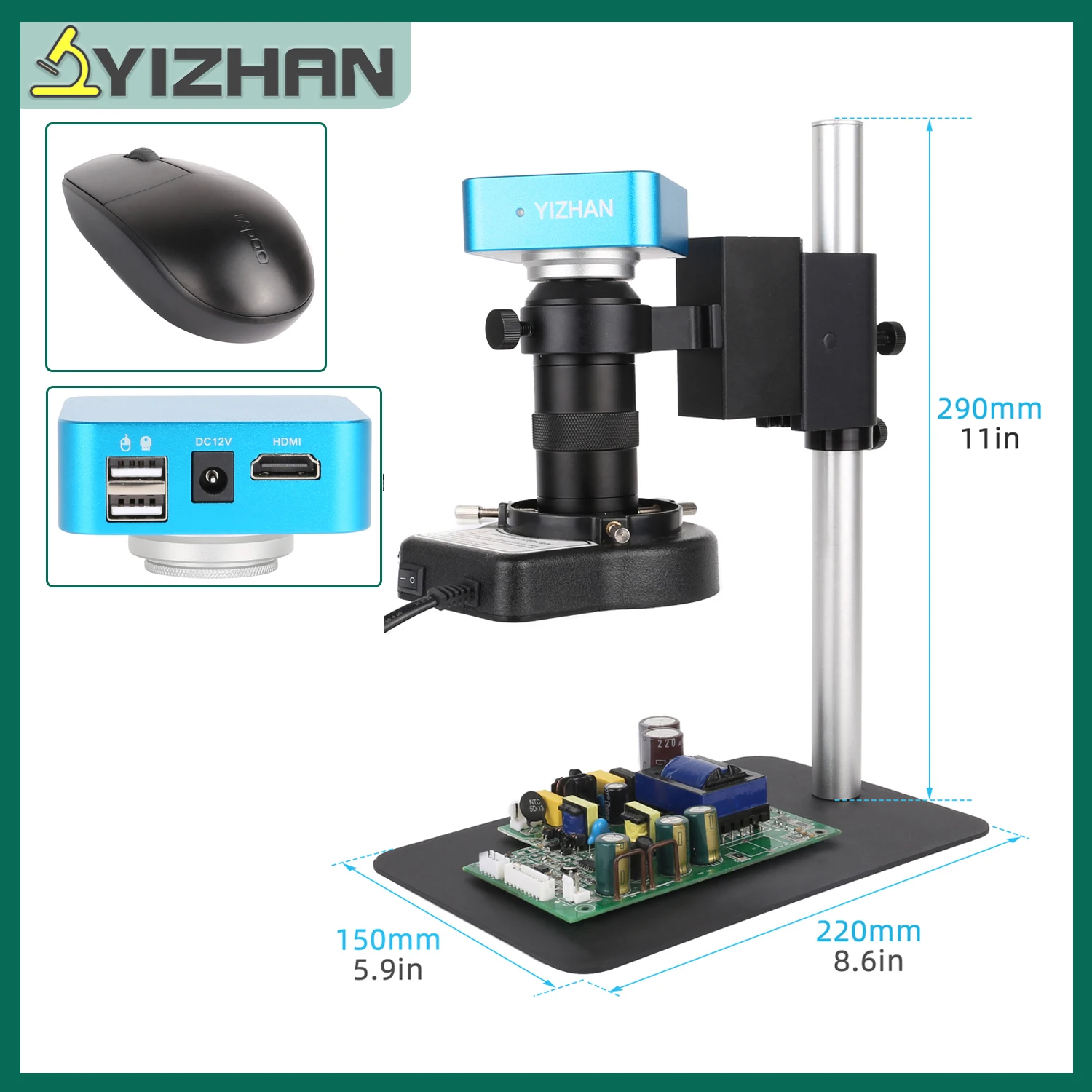YIZHAN Sony-IMX335 HDMI USB цифровой видео монокулярный микроскоп камера мышь управление с программным обеспечением 180X C-Mount Lens