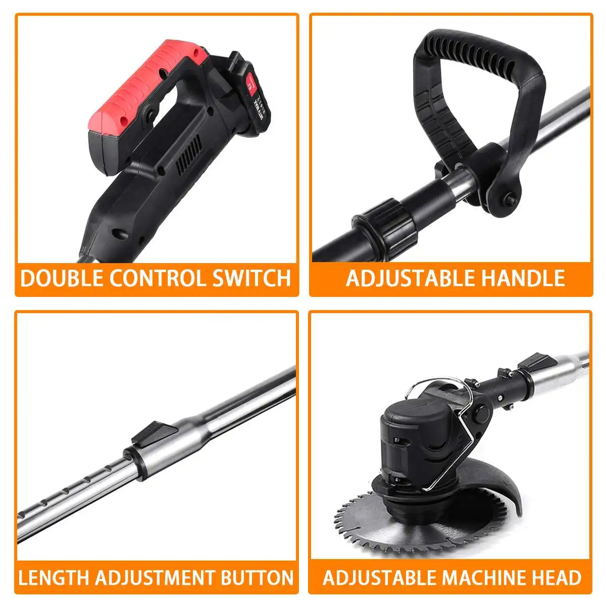 Беспроводная электрическая газонокосилка Wolike 88VF 2000 Вт, 35000 обмин, литий-ионный триммер для травы, обрезка сада, электроинструменты с 2 аккумуляторами 6000 мАч