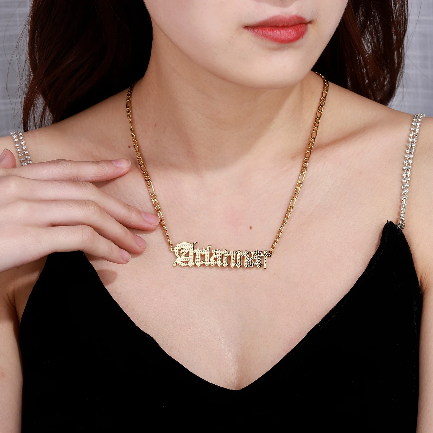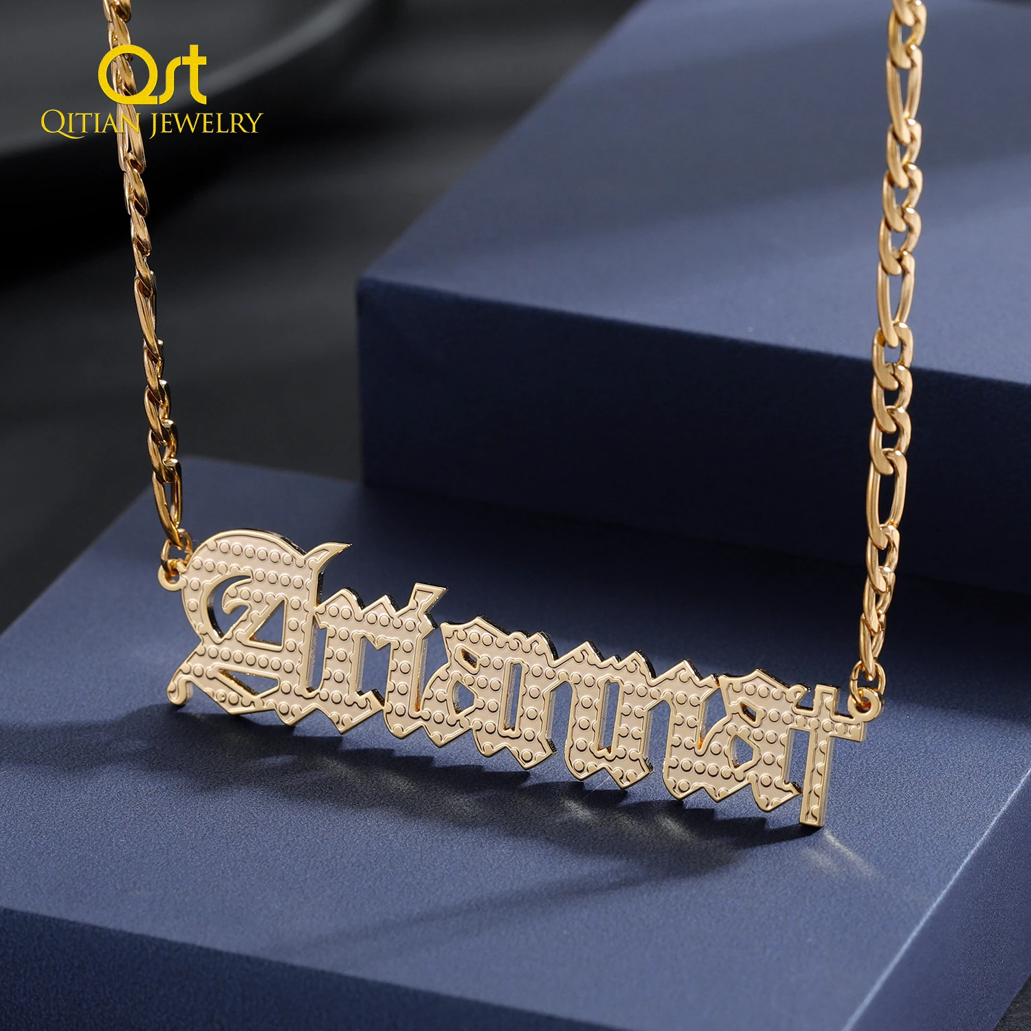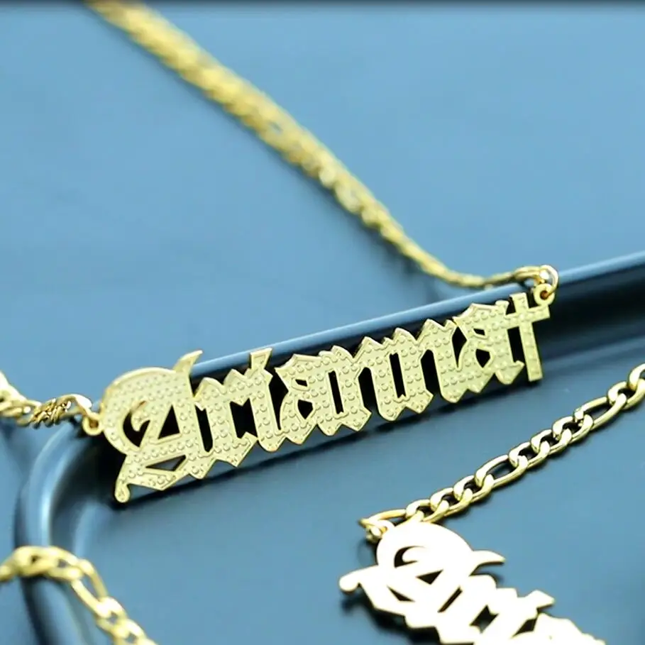 Оригинальное текстурированное Старое Английское ожерелье с именем, крест-символ из нержавеющей стали, позолоченная тарелка 18 карат, кулон для женщин, подарки
