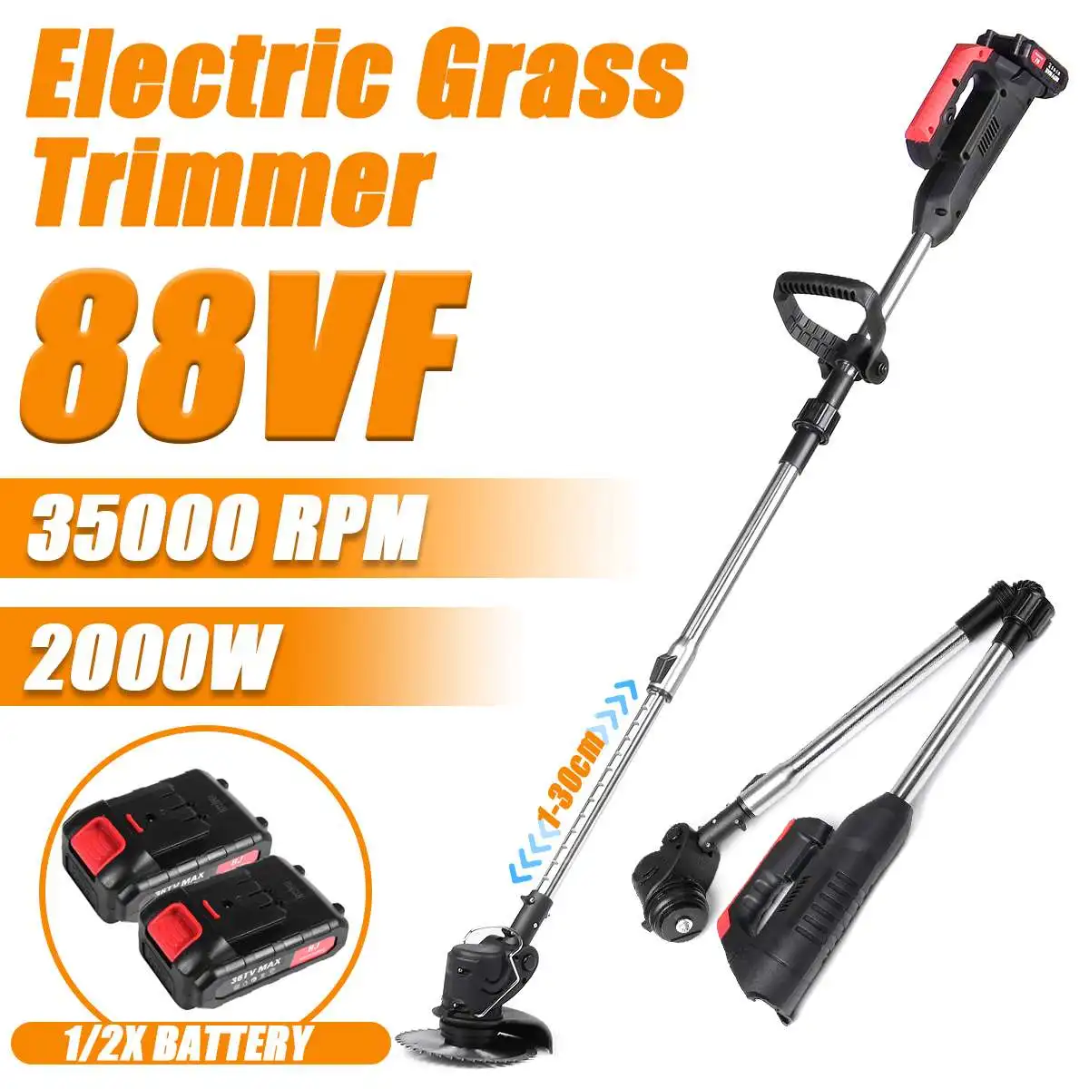 Беспроводная электрическая газонокосилка, 35000 обмин, 2000 Вт, 24 В, литий-ионный триммер для травы, обрезка сада, электроинструменты с 2 аккумуляторами 6000 мАч