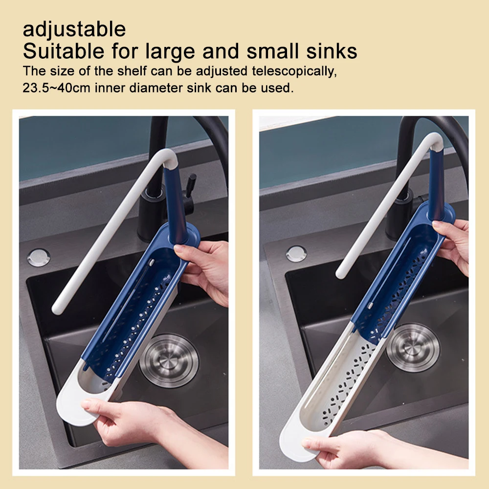 Телескопическая полка для раковины, стеллаж для мыла, губки, корзин...