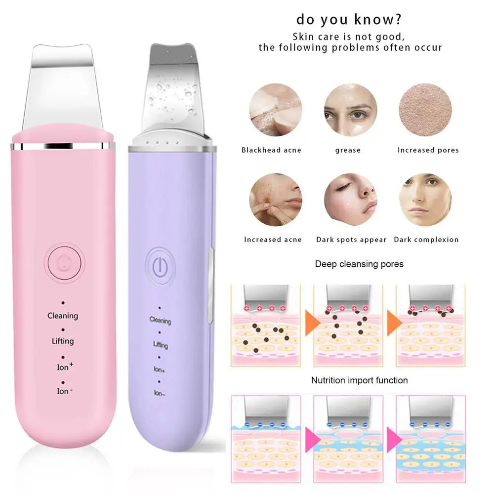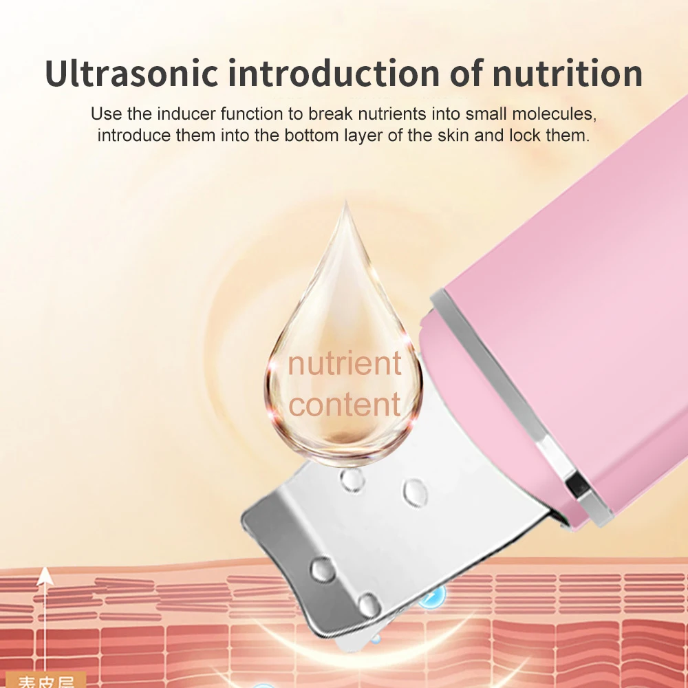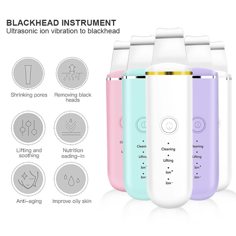 Ультразвуковой очиститель для кожи, шпатель для вибрирования лица, лопатка для удаления черных точек, кавитационный пилинг, лифтинг кожи, уход за кожей