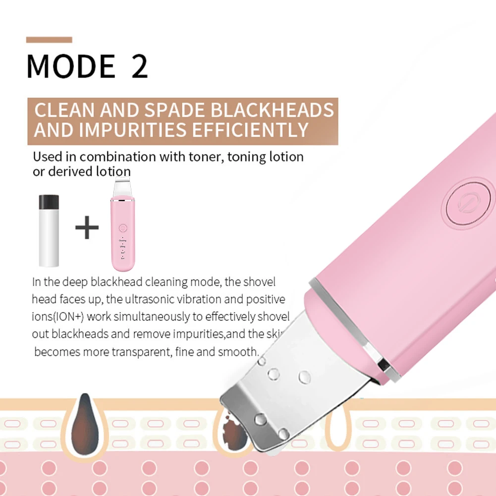 Ультразвуковой очиститель кожи скруббер Вибрация шпатель для лица удаление угрей Лопата кавитация пилинг уход за кожей лица лифтинг