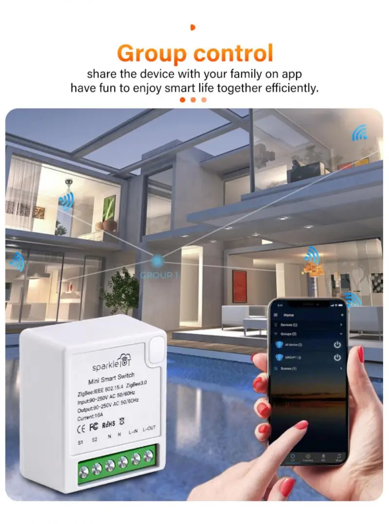 Умный мини-переключатель ZigBee 16A подходит для большего количества электрооборудования. Вы можете использовать смарт-переключатели на бытовую технику и светильник, чтобы вы могли включить или выключить устройство на свой мобильный телефон. Он может быть приурочен, Голосовое управление (Alexa, Google assistant), а также могут быть созданы умные сцены. Мини-переключатель может поместить смарт-переключатель в кассету, поэтому его не нужно размещать за лампой-светильник. Поддерживает три способа подключения, без переключателя/односторонний переключатель/двусторонний переключатель. (Требуется нейтральный провод).