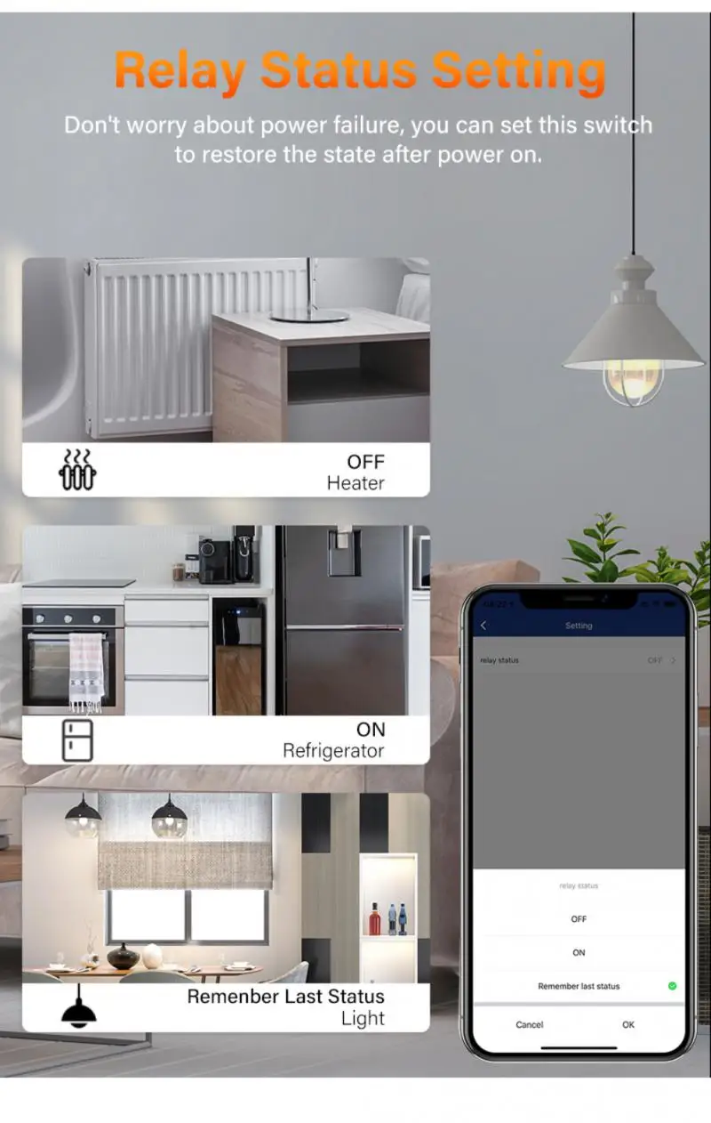 Управляйте включением и выключением устройства, синхронизацией, обратным отсчетом и другими функциями через мобильный телефон. Пока мобильный телефон имеет сеть, модуль переключателя дома можно контролировать по всему миру.