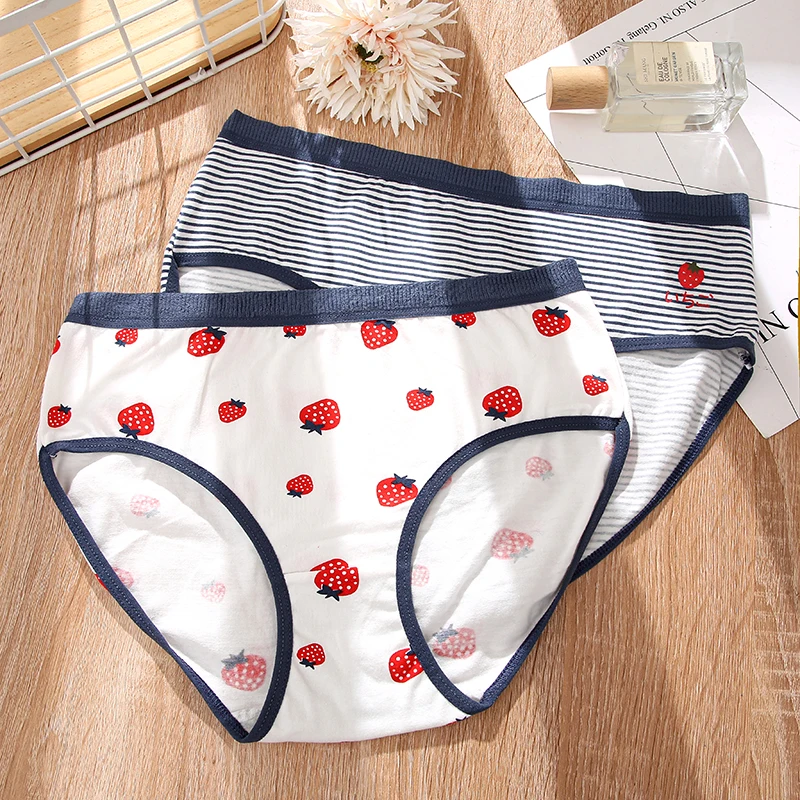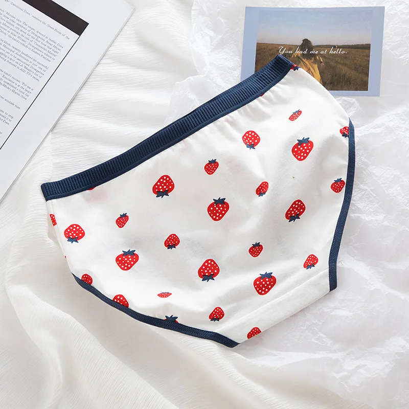 12 шт., женские хлопковые трусы с принтом клубники