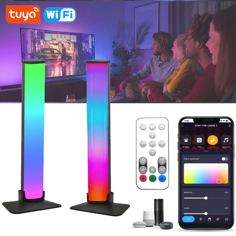 Как подключиться к сети:1. После включения управления (рекомендуется использовать usb-адаптер питания выше 5V2A) Красный светильник начнет мигать. Если нет мигания, пожалуйста, включите и выключите питание непрерывно в течение 3 раз. Красный светодиодный светильник начнет быстро мигать. (Один раз в секунду)2. Откройте приложение Smart life, чтобы добавить светильник ing --- светильник-полоска (wifi), введите пароль Wi-Fi и подождите, пока подключение к сети (Пожалуйста, обратите внимание на то, что + сети Wi-Fi необходимо 2,4G диапазон частот) после того, как сеть успешно настроен, светильник перестанет мигать3. Пульт дистанционного управления не должен быть сопряжен. Его можно непосредственно использовать для управления окружающим светильник. Существует более 30 встроенных режимов. Вы можете переключить выбор или переключить музыкальный режим по желанию через пульт дистанционного управления, чтобы реализовать переключатель, яркость и настройку цвета.WIFI режим связи, управляемый мобильное приложение smart life, поддерживает Android andIOS системы;Вечерние смарт-динамики с поддержкой voicecontrol: колонки Amazon, Google Assistant,Xiaodu и т. Д.;Функции работы Приложения разнообразны: синхронизация, настройка цвета, групповое управление, управление счетом и дистанционное управление после подключения к работе;5 в блок питания мини controller16-key инфракрасный пульт дистанционного управления-поддержка дистанционного затемнения, регулировка цвета, режим воспроизведения музыки, runningand другие функции;Режим музыки: Встроенный музыкальный датчик, может получать внешнюю музыку, скорость изменения цвета и скорости может быть изменена синхронно с термином музыки.Tuya Smart WiFi + IR цифровой музыкальный светодиодный светильникУмный светодиодный светильник, работает с Alexa, игровой светильник для ПК игровой ТВ-комнаты[Развлечение]Этот умный светильник стильно дополняет цвет вашего домашнего кинотеатра, создавая более впечатляющую развлекательную систему. Позвольте вам погрузиться в фильмы, игры или музыку и насладиться магией освещения.[Настраиваемые режимы сцены]Существует более 30 встроенных режимов сцены на выбор, создавая необходимую атмосферу. Каждый режим отображает различные цвета и эффекты освещения, вы можете выбрать в соответствии с различными сценами, пока вы не удовлетворены.[Синхронизация музыки]С помощью встроенного микрофона Подсветка телевизора может быть плавно синхронизирована с музыкой или звуком на экране. Выберите эти режимы из пяти режимов, чтобы значительно улучшить свой мир фильмов, караоке или игр. (Поддержка управления приложениями smart life или дистанционного управления, не поддержка Alexa и Google Assistant)[Легко установить]Подключите умный светильник к задней панели телевизора или компьютера с помощью сильного клея. Или используйте предоставленный кронштейн для легкой установки рядом с или за экраном. Эти лампы быстро устанавливаются и просты в эксплуатации.Характеристики:Название продукта: музыкальная ритм-лампаМатериал: алюминийЦвет: RGB-16 миллионов цветовВходное напряжение: 5 ВСпособ питания: USBТип источника: светодиодный светильникДлина кабеля USB: 2 мДлина провода между двумя огнями: 1 мУдаленное расстояние: 15 мПульт дистанционного управления: CR2032 не включаетПрименение: Smart life/ Tuya SmartПоддержка Мобильный телефон: iOS8.0 или выше, Adroid4.4 или вышеРабота с: Alexa,Google HomeРазмер