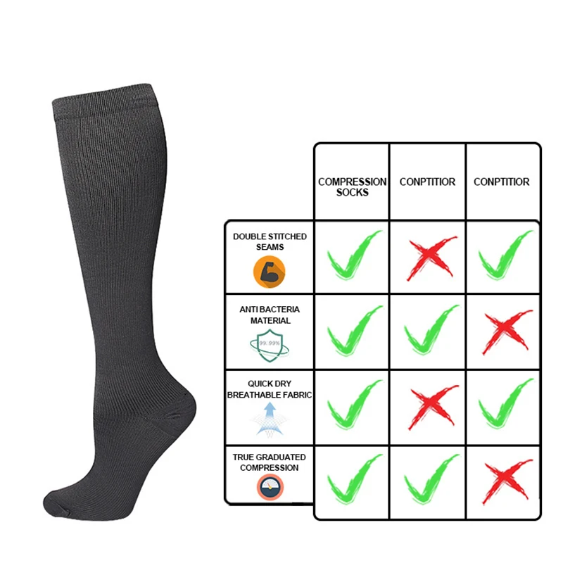 1 пара, Длинные Компрессионные носки для мужчин и женщин, 20-30 мм рт. Ст.