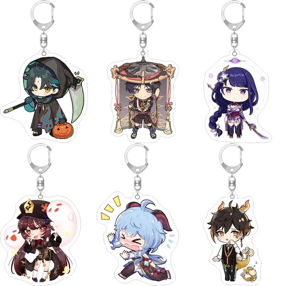 Брелок для ключей Game Genshin Impact совместим с брелоками из акриловой пленки с обеих сторон, брелок для ключей Ganyu Keqing Wendi Xiao Hutao