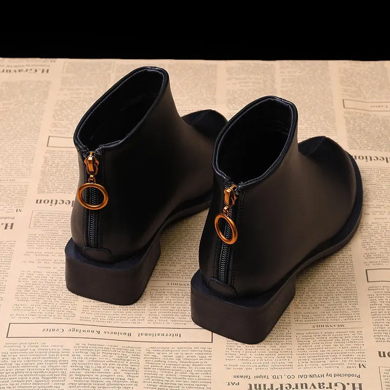 Ботинки женские на толстом каблуке, короткие женские ботинки на рез...