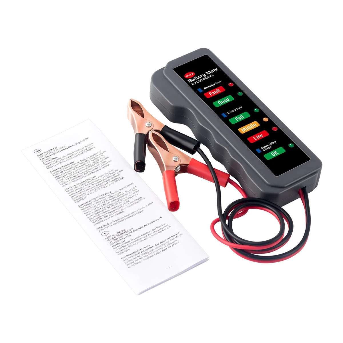 【 12V автомобильный аккумулятор TESTER】 в том случае, если о своевременной замене батареи или просто не нуждается в подзарядке, BM310 тестер автомобильного аккумулятора сказать вам состояние батареи от аккумулятора и тестирования генератора. Это для всех 12 В зарядных систем, включая регулярные Затопленные, AGM плоские пластины, AGM спиральные и гелевые батареи для транспортных средств, вилочных погрузчиков, гибридных автомобилей, внедорожников, пикапов, лодок, мотоциклов, трейлеры для путешествий.【Проверка генератора и 6 светодиодных индикаторов 】 Зарядка аккумулятора для проверки состояния здоровья автомобильного аккумулятора с 6 светодиодами показывает состояние, Зеленый означает хорошее/полное, Оранжевый означает середину, Красный означает низкое. Простой, интуитивно понятный и четкий.【Accurate индикаторы на раннюю warning】Pure медного провода могут варьироваться в зависимости от пожеланий клиента сделать отличную проводимость, высокая чувствительность (точность достигает 0,1 V) точно считывает напряжение батареи, даже если ваш автомобиль имеет не отображается, это может дать вам раннее предупреждение.【Функция обратной защиты 】предотвращает выгорание, вызванное неправильной работой между (+) аккумулятором и (-) кабельным терминалом. Это помогает продлить срок службы продукта и защитить Автомобильные батареи.[Отличное обслуживание] не скользит дизайн позволяет использовать его гибко даже в перчатках. Многоязычное использование r Руководство: английский, немецкий, французский, испанский, итальянский и так далее.