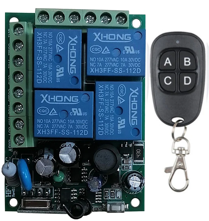 Удерживайте нажатие одной кнопки, соответствующий канал работает/включается; Отпустите палец-это остановка/выключение. (4-канальный переключатель (приемник) требуется 4 кнопки дистанционного управления (передатчик)