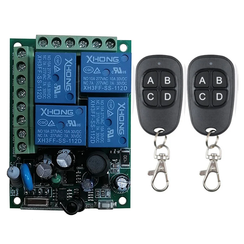 Универсальный беспроводной пульт дистанционного управления, 433 МГц, 110 В переменного тока, 220 В, 4-Канальный Релейный приемник и передатчик для гаража, двери, двигателя, занавески, светодиода