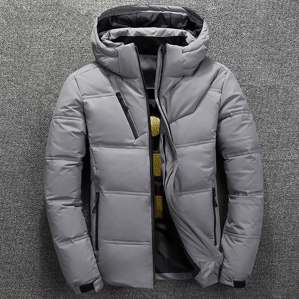 Новая белая куртка на утином пуху, Мужская зимняя теплая однотонная...
