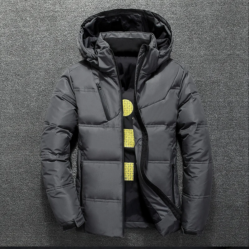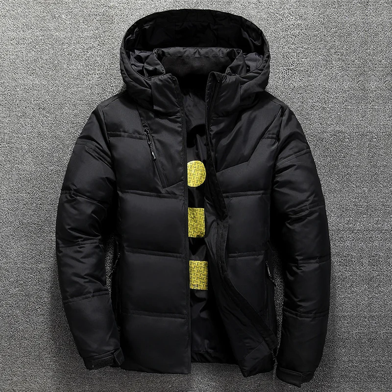 Мужская теплая зимняя куртка-пуховик с капюшоном, с воротником-стойкой