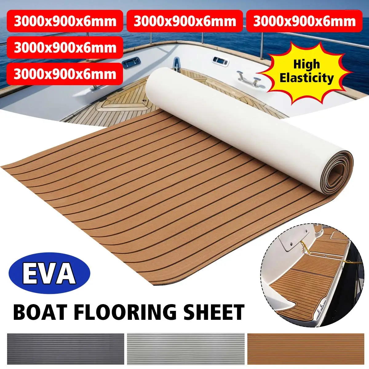 Самоклеящееся напольное покрытие из Тикового пеноматериала EVA, морское напольное покрытие из искусственного настила для лодки, аксессуары, морской, серый, черный, 3000x900x6 мм