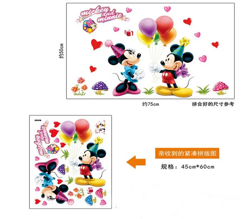 60x90 большие наклейки на стену с Микки и Минни Маусом для детской ...